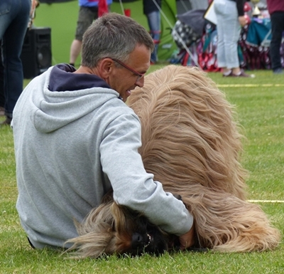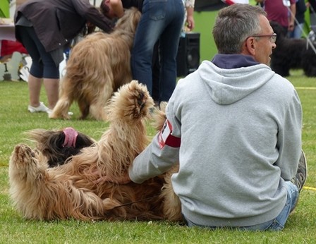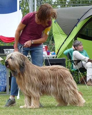 31.05.2017Auf der UEBB/Clubschau des belgischen Briardclubs in Andenne am vergangenen Wochenende war ein Wälkesberger vertreten.... Goel "Leo" gewann die offene Klasse (fauve und schwarz wird jetzt auch in Belgien gemeinsam in einer Klasse gerichtet) Herzlichen Glückwunsch !!