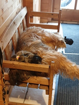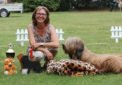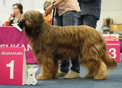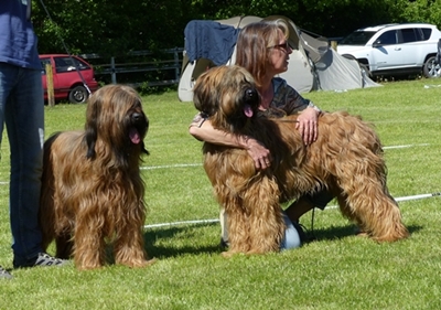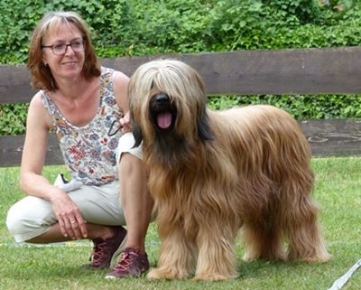 15.07.2018 Fast vergessen....... Da gab es ja noch die AG Briard und NRW Sieger Show in Hamm und wir waren natürlich dabei. Kleinteil Mia hatte ihre freudige Rute "im Griff" und durfte sich endlich mal über V2 und V3 freuen, Leo erhielt an beiden Tagen V4, Schwesterchen Brielle V und V2 und den Wanderpokal für's BESTE GANGWERK "freu freu"!! Bei Edda bin ich mir untreu geworden. Sollte sie doch eigentlich nicht mehr ausgestellt werden, aber schließlich ist sie doch immer mit uns unterwegs und ehe sie sich langweilt weil immer nur ihre Kinder in den Ring dürfen, durfte sie eben in die Veteranenklasse (ab 8 Jahre) |