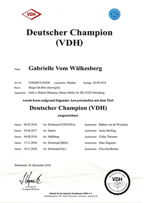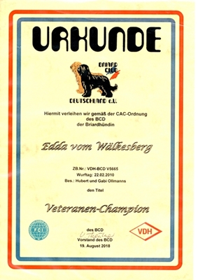 24.11.2018 Endlich nach gut 3 Monaten traf Edda's Urkunde für den BCD Veteranenchampion hier ein. Was lange währt....... ;- |