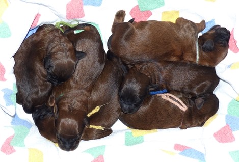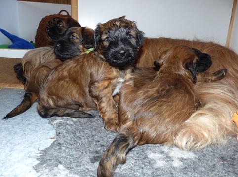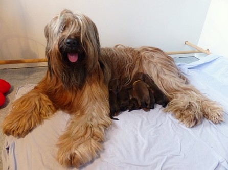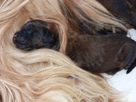 Für Brielles erste Deckung fiel die Wahl auf den jungen Limited Edition du Rêve Lourd d'Été aus den Niederlanden, genannt "Vinur" Klein, kompakt und einfach knuffig. Ein süßes Paar die beiden :-) Wie Brielle ist auch er HD, CSNB und eU-frei. Die beiden hatten ihr Date am 20.11. und am 21.01.18 wurden ihre Babys geboren: 5 Rüden und 1 Hündin - eine weitere Hündin wurde leider tot geboren.